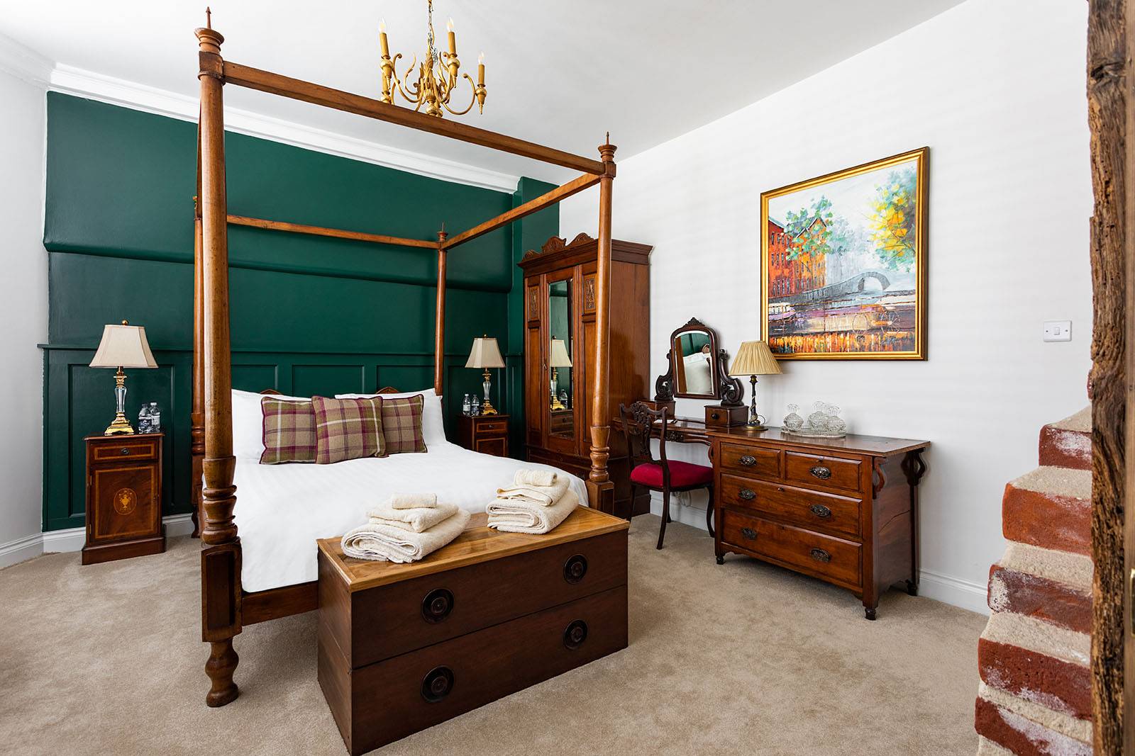 Our newly refurbished apartments comprise of stunning solid antique beds, luxury bathroom, large dining area, bright and airy lounge with picturesque views of Maldon, and a fully fitted kitchen with microwave, dishwasher and oven. Two of our five rooms (Byrthnoth and D’arcy) also have a washing machine.