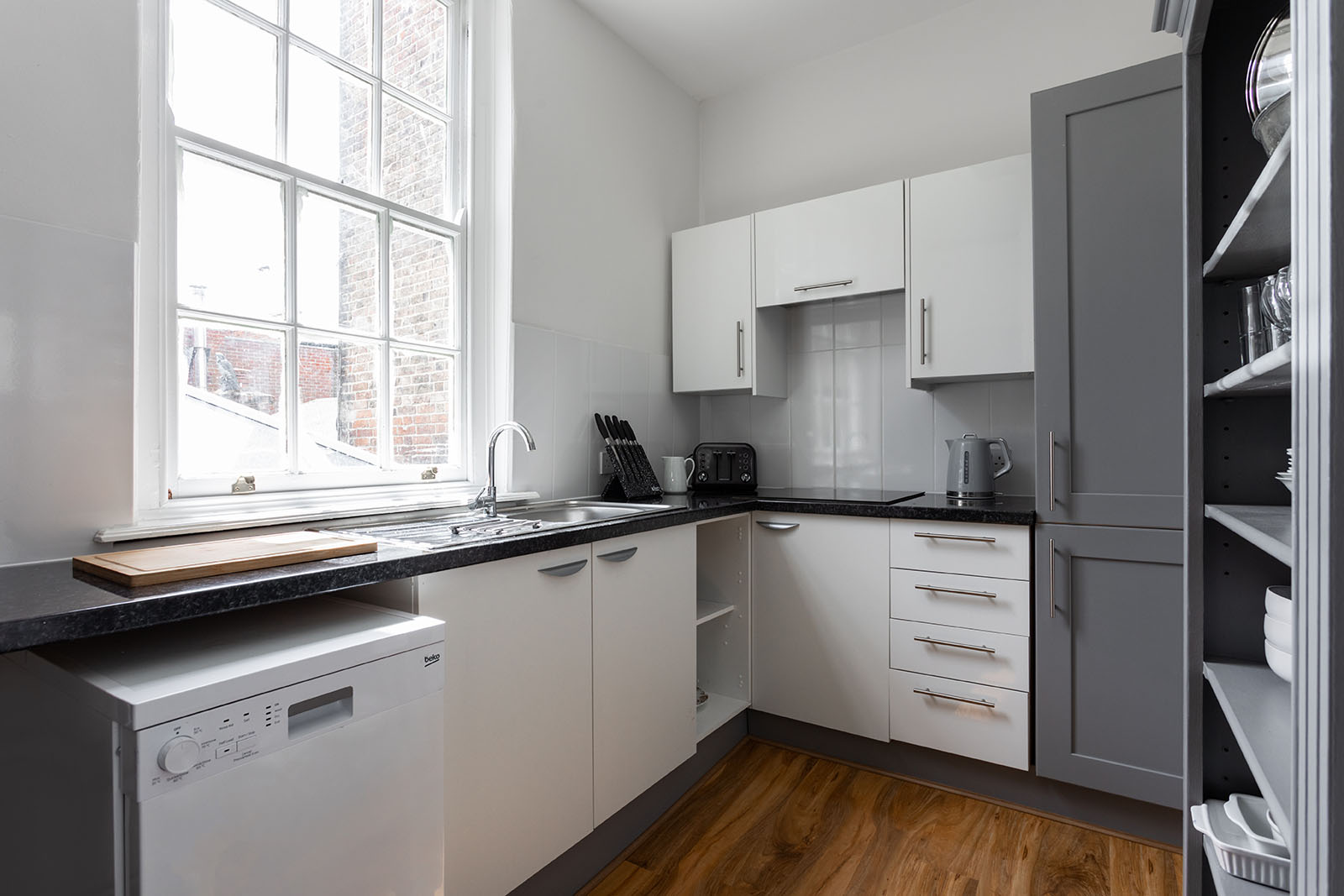 Electric oven, microwave, kettle, toaster, fridge freezer, dishwasher